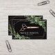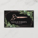 Cabelo de Rosa de Stylist com tesoura geométrica Greenery Hair Salon Black Cartões de visitas.
