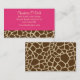 Cartão De Visita rosa do impressão do girafa