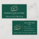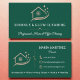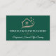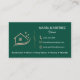 Um design cartão de visita surpreendente com um rico fundo verde esmeralda, logotipo da casa dourada rosa e sotaques espargos elegantes. Perfeito para profissionais de limpeza, serviços de empregada, empresas residenciais ou de limpeza de escritórios, e especialistas em limpeza profunda que querem um olhar exclusivo e de inspiração butica. O nome serif em negrito emparelhado com um slogan de script gracioso cria um layout polido, enquanto os detalhes do rosa ouro metálico adicionam um acabamento luxuoso.