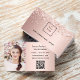 Cartão De Visita Rosa dourado foto QR code gliter fêmea