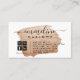 Um cartão de visita de maquiagem tipográfica moderno e mínimo com um traço de pincel metálico rosa dourado. Típica de tendências e ícones das mídias sociais.