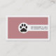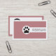 Rosa Vet Dusty/Clínica Veterinária, cartões de visitas minimalistas de pata que apresentam uma pata preta num círculo branco. Fundo cor-de-rosa rosa com bordas brancas. Um design excelente feminino para veterinários ou serviços de clínica/hospital para animais de companhia.