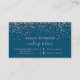 Um elegante cartão de visita de artista moderno, na moda, com elegante estilo de letra simples e elegante, com tipografia de rosa gold confetti ocean Blue Chic. todo o texto é personalizável, adicione a mídia social.
