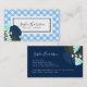 Cartão De Visita Rosas azuis Floral e Blue Gingham