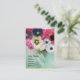 Elegantes rosas brancas rosa e anêmonas roxas azuis sobre fundo azul aqua. Este design sofisticado e único é ideal para casamentos, cartões de lugar, cartões de save-the-date, cartões de agradecimento, chá de noiva, festas de aniversário de 16 anos, festas, chá de noivado, ou praticamente qualquer evento que você desejar!