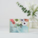 Elegantes rosas brancas cor-de-rosa e anêmonas roxas azuis sobre um fundo azul aqua esverdeado. Este design sofisticado e único para casamentos, cartões de lugar, save-the-date, cartões de agradecimento, chás de noiva, festas de aniversário de 16 anos, festas, chás de noivado, ou praticamente qualquer evento que você desejar!