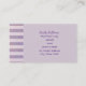 Um modelo de cartão de negócios com uma ilustração brilhante de uma rosquinha fosco cor-de-rosa com aspersores coloridos. A borda esquerda tem um padrão de estilo vintage com faixas roxas desbotadas. Design e bonitinho para padeiro, padaria ou outros negócios temáticos de rosquinhas.