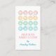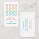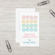 Cartão de visita branco com rosquinhas de cor pastel. Um cartão de visita delicioso para um chef de pastelaria ou uma padaria em rosa, branco, verde, amarelo e azul.
