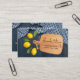 Cartões de visitas do Partido Catering Charcuterie do Cozinhar Citrus Script Cutting Wood apresenta um design simples, mas na moda, com um conselho azul-rústico de corte de cozinha com uma sobreposição do seu nome, nome da empresa, tipo de negócio, designação ou informações adicionais acentuadas com limões e uma toalha de cozinha azul-gingham na frente. No verso estão os seus dados de contato personalizados, os detalhes das mídias sociais e o Código QR personalizado. Perfeito para uma grande variedade de marketing de negócios de cozinhar, restauração coletiva, charcuterie e antipasto, e muito mais. Personalize editando o texto nas caixas de texto fornecidas. Elaborado por ©Evco Studio www.zazzle.com/store/evcostudio