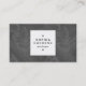 Um modelo de cartão de negócios na moda com um painel preto quadrado de 1,3 pol na frente. Nome e cargo/tipo de negócio no painel frontal. O Nome é criado em duas linhas em maiúsculas com um espaço extra entre cada letra dando uma bela aparência de marca de designer de alta qualidade. O painel quadrado também é decorado com dois motivos retangulares que foram criados usando uma das fontes úteis do símbolo Zazzle. Detalhes de e-mail, web, endereço e telefonia bem organizados no verso da placa com um fundo de cinza escuro. Este cartão também pode ser mais personalizado. Esta versão tem uma imagem de sobreposição texturizada branca semitransparente sobre a cor de fundo.
