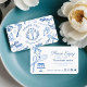 Obrigado de padaria moderna e chic, você tem um cartão de visita design de uma variedade de nossos cozinhar desenhados à mão e utensílios cozinheiros (uísque, saco de canalizações, saco de pastelaria, misturador de bancas, colher e pino rolante) Os utensílios estão organizados em volta do obrigado para sua empresa. Uma bela paleta colorida de tons azuis cria este cartão de visita moderno de obrigado de padaria chic. O reverso é projetado em estilo limpo e mínimo com alguns utensílios do padeiro adicionados. Personalizado o código de desconto e o código de cupom. Um simples, chic e na moda para o padeiro doméstico, padaria, padeiro empreendedor, cozinheiro, catador e muito mais. Todos os trabalho de arte e logotipos contidos na cartão de visita do nosso padeiro são obras de arte originais desenhadas à mão pela Moodthology Papery. Você pode personalizar a cor de fundo, a cor do logotipo, a fonte e o layout para sua própria preferência pessoal.