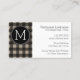 Cartão De Visita Rustic Linen Black Buffalo Xadrez gingham Monogram