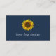 Interior Designer QR code navy blue business card, with a rustic sunflower design. With customizable text, you can add your own information. You also add your website to the QR code field for more promotion. Great for adding a boho botanical touch to your interior design or professional stylist business.