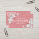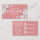 Cartões de visitas florais cor-de-rosa para o seu negócio de sabão e vela! O design apresenta rosas brancas em uma placa cor-de-rosa com fundo estilizado com texto branco. Adicione o nome da sua empresa, a oferta de promocionais e as páginas de mídia social e marque as costas para que a bola realmente continue em sua empresa.