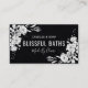 cartões de visitas florais pretos para o seu negócio de sabão e vela! O design apresenta rosas brancas em um fundo com estilo carvão com texto branco. Adicione seu nome de empresa, oferta de promocional e páginas de mídia social e marque as costas para realmente fazer a bola rodar em sua empresa.
