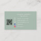 Back: name, title, qr code to your website, contact information and Facebook and Instagram icons. White text.