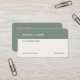 The design features a soft sage green palette that evokes natural stillness without feeling flat. Clean sans-serif typography sits with deliberate spacing against a minimal layout, while a fully scannable QR code anchors the card with practical, forward-thinking functionality. Every element earns its place — nothing decorative, everything purposeful.
