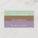 A frente desta design mínima de classe apresenta uma paleta de três cores com plum roxo, chocolate marrom e hortelã verde com saudação em um simples bloco branco na parte superior direita enquanto na parte inferior esquerda é um lugar para você adicionar seu nome e/ou negócios. Na parte traseira, a paleta de cores é invertida com três locais para que você adicione seus detalhes de contato. Todos os elementos deste design podem ser totalmente personalizados, então faça dele seu ou deixe-o como está. Apenas adicione seus detalhes e você está pronto!