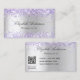Um fundo metálico falso prateado. Decorado com pó brilhante de cor violeta, lavanda. Personalize e adicione seu nome e um texto na frente. Voltar: Modelos para seu nome, título, número de telefone e seu próprio código QR.
