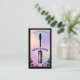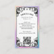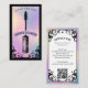 Eleve o seu estúdio de cílios ou marca de artista de cílios com o nosso Cartão de Visita de Estúdio de Cílios Holográfico Iridescente Vintage, apresentando uma moldura ornamentada desenhada à mão contra um fundo holográfico iridescente falso para um visual impressionante inspirado em tarô. A frente apresenta um aplicador de máscara vintage centrado no design da moldura, deixando espaço para o nome do seu estúdio e slogan, enquanto o verso exibe floreios elegantes, uma moldura holográfica iridescente e suas informações de contato com um código QR para reservas fáceis. A mistura dramática de preto combinado com acentos holográficos cintilantes cria uma estética sofisticada e mística, perfeita para estúdios de cílios, artistas de cílios e profissionais de beleza que buscam uma apresentação única e inspirada no vintage. Design e ilustração criados