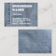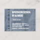 O fundo deste cartão de visita é uma fotografia de um par de calças de ganga desvanecida.