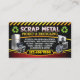 This is a double-sided scrap metal business card with English on the front and Spanish on the back.