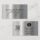 Um belo design que incorpora o logotipo da sua empresa e o seu Código QR. Este elegante cartão de visita de visual metálico-prateado de aparência de assinatura é ideal para todos os tipos de negócios. Uma maneira simples e profissional de apresentar sua empresa. Ícones das mídias sociais incluídos na design deste cartão de visita para você usar. Personalize seus detalhes para criar seu próprio cartão de visita exclusivo.