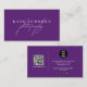 Cartão De Visita Script de assinatura roxa Código QR Mídia social