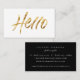 Elegante e moderno script de ouro escovado "Olá", cartões de visitas profissionais. O estilo de design exclusivo apresenta várias linhas de texto de modelo para informações. As cores de fundo, mostradas em preto-e-branco, podem ser personalizadas.