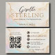 Elevem a sua marca com este cartão de visita de pedra opal luxuosa em pérolas apresentando pastéis suaves iridescentes, sotaques de ouro quente e tipografia elegante de scripts. Projetado para artistas profissionais de maquiagem, ele inclui um código QR funcional para visualização instantânea de portfólio e reserva de compromisso, criando a combinação perfeita de beleza do eterno e conveniência moderna.