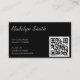 Cartão de visita de Script Mínimo Negro Preto Profissional Moderno. Design preto e branco moderno. Apresenta a fonte manuscrita do script de assinatura. O código Qr pode ser substituído por um logotipo. Encomendas personalizadas estão disponíveis em trullc@gmail.com