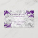 Cartão De Visita Script Moderno Floral Simples Roxo e Prata
