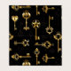 Seamless pattern of antique, gold and silhouette keys on black background.