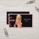 Senhora loira, as cores são pretas e cor-de-rosa.