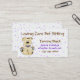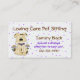 Cartão de visita de babá de estimação bonito feito em uma lavanda pálida e verde, em padrão branco, bolinhas, com gráficos country de um cachorro doce segurando um osso na boca. Texto em lavanda e marrom é completamente personalizável para atender às suas necessidades. Maneira divertida de anunciar seu negócio.