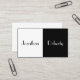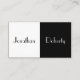 Cartão de visita preto e branco moderno retro. Branco na metade esquerda e preto na metade direita. O nome está em preto e branco está no preto. A informação de contacto comercial é na parte de trás do cartão para manter um design minimalista limpo