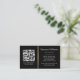 Cartões de visitas pretos modernos, elegantes, com logotipo personalizado e modelos de código QR. O texto e o código QR são separados por uma linha divisória com gradiente de cor de ouro impresso (não com folha real). Fontes, cores de fonte e cores de fundo podem ser alteradas com a ferramenta design.