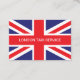 Taxi o cartão de empresa de serviços com Union Jack na parte dianteira com seu nome da empresa caracterizado e seus detalhes do aluguer de carro no lado do texto do cartão neste design bilateral esperto para um serviço do táxi de Londres ou de todo o lugar no Reino Unido.