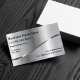 Cartões de visitas de construção e soldadura de metal projetados com trabalho de arte de metal prateado impresso digitalmente sobre fundo em um layout simples que você pode personalizar online.