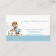 Serviço de limpeza profissional com uma senhora segurando um balde com bolhas de cartão de visita. Perfeito para publicidade e crescimento de sua empresa.