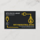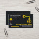No verso, em uma cobrir de cinza escura semelhante, um logotipo amarelo de tomada elétrica residencial que você pode usar, sentado no topo. Isso é seguido pelo seu nome prestigiado, detalhes de contato e uma opção de slogan para divulgar seus serviços.