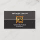 Um design retro simples. O cartão é dividido em metades do cinza e do preto. Uma linha branca delimita estas duas colunas. É no centro um motivo quadrado do ouro de uma cena home. Seus nome e posição estão na parte superior seguida pelos detalhes do nome da empresa e do contato na base.