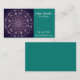 Um cartão de visita apropriado para um astrólogo em uma astrologia ou em um negócio novo da idade. Este cartão caracteriza uma ilustração roxa de uma roda da astrologia com sinais do zodíaco. O texto pode inteiramente ser personalizado para seri-lo precisa. Cores roxas e azuis reconfortantes.