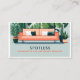 Um cartão de visita moderno, simples e elegante para um negócio de serviços de limpeza e manutenção doméstica. Ele apresenta uma ilustração retróquica de um sofá moderno, com plantas exuberantes em cada lado, em um esquema de cor cor de choro e laranja. Esta cartão de visita é perfeita para serviços de limpeza de casas, manutenção de casa, serviços de empregada, serviços de limpeza ou limpeza de estofos.