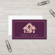 Serviços modernos de limpeza cartão de visita inclui o equipamento de limpeza ícone da casa rosa de ouro, nome e título na frente, em fundo roxo. Perfeito para serviços de limpeza doméstica e industrial.