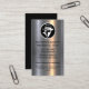 Design de cartões de visitas de segurança privados clássicos e legal criados com um emblema de segurança moderno que você pode usar em nossas placas e um gráfico de fundo refletor de tom prateado que adiciona um fator legal à placa visitante. Projetado para um detetive particular, Guarda de segurança, guarda-costas pessoal ou cibersegurança.