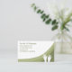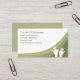 Cartões de visitas modernos de terapia de massagem criados em lindos tons de verde com massagem de mãos gráficas no fundo e o layout clássico de perfil de negócios que você pode personalizar online.