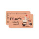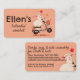 Super cute lamb or sheep riding a scooter with yarn basket on these business cards for a knitter or knitting, crochet, homespun or handspun yarns, personalized with your choice of colors, fonts and text, perfect for products and craft show packaging.
