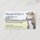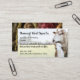 Business card template for a wool and fiber shop, farm, or company. A sheep and lamb image on the right side over a background of farmland. Customize black text, in script and printed fonts, in four places. There is enough space in this design to include a company name, owner / proprietor, short about section and contact, or social media locations. Skeins / hanks of hanging wool is the image on the back and is a template that can be used to replace with a photo of your own wares, store, or yourself.