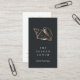 Cartões de visitas verticais elegantes para qualquer ocupação apresentam uma concha tropical em folha de cobre falso sobre um fundo preto macio rico com duas linhas de texto personalizado em branco. Personalize a parte traseira com os detalhes do contato do cheio, mostrados abaixo de uma ilustração de célula correspondente menor. Essas placas de chic são ideais para empresas de praia.